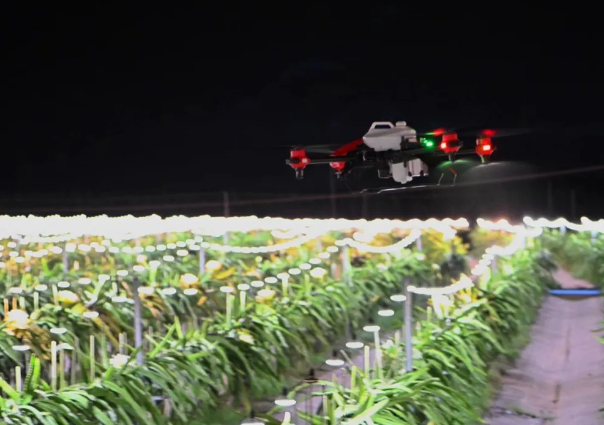 極飛農(nóng)業(yè)無人機夜間給火龍果噴藥