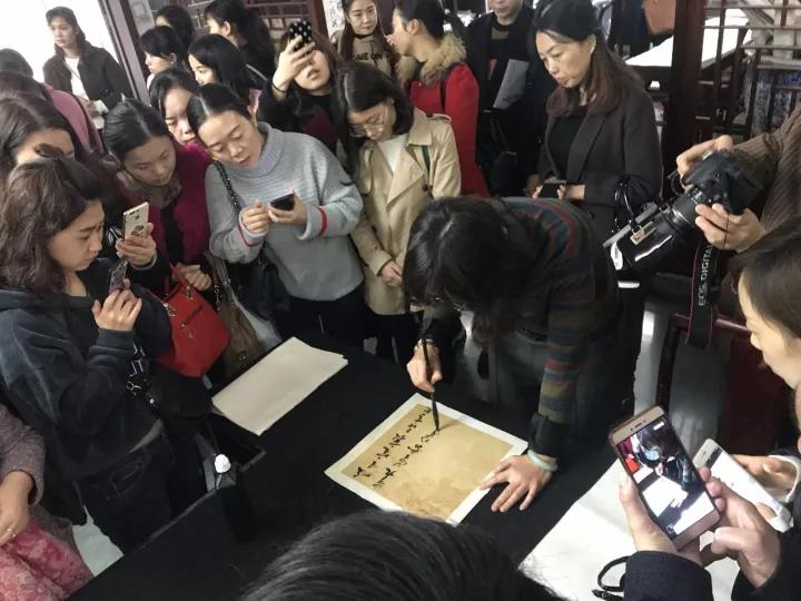 培訓(xùn)班學(xué)員在中國(guó)農(nóng)業(yè)大學(xué)附屬小學(xué)進(jìn)行訪學(xué)時(shí),農(nóng)大附小書法老師贈(zèng)與重慶班老師一幅墨寶,全體參訓(xùn)教師還觀摩了特色繪本閱讀展示課。