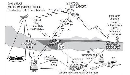 數(shù)據(jù)鏈傳輸系統(tǒng)是無人機(jī)的重要技術(shù)之一,負(fù)責(zé)完成對無人機(jī)遙控、遙測、跟蹤定位和傳感器傳輸,上行數(shù)據(jù)鏈實(shí)現(xiàn)對無人機(jī)遙控、下行數(shù)據(jù)鏈執(zhí)行遙測、數(shù)據(jù)傳輸功能。普通無人機(jī)大多采用定制視距數(shù)據(jù)鏈,而中高空、長航時(shí)無人機(jī)則都會采用視距和超視距衛(wèi)通數(shù)據(jù)鏈。