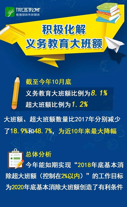 為確保如期平穩(wěn)實現(xiàn)消除大班額工作目標,將進一步強化政府發(fā)展義務(wù)教育主體責任,加強省級統(tǒng)籌,加大對大班額問題嚴重的貧困縣支持力度,督促縣級政府合理規(guī)劃義務(wù)教育學(xué)校布局,優(yōu)先保障學(xué)校建設(shè)用地。加快推進縣域內(nèi)城鄉(xiāng)義務(wù)教育一體化發(fā)展,補齊鄉(xiāng)村教育短板,提高鄉(xiāng)村教育質(zhì)量,穩(wěn)定鄉(xiāng)村生源,促進實施鄉(xiāng)村振興戰(zhàn)略。