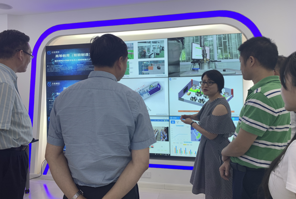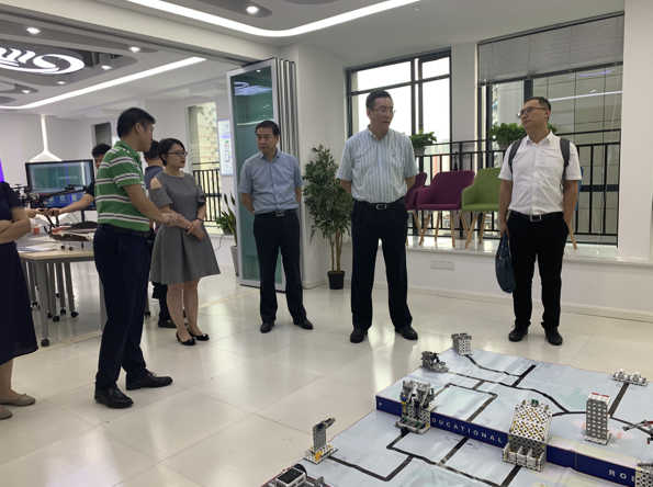 張總為副區(qū)長(zhǎng) 于強(qiáng)講解樂(lè)教集團(tuán)為高等院校/中職院校全力打造智能制造創(chuàng)新教學(xué)體系建設(shè), “1:1智能工廠”實(shí)驗(yàn)室/“虛實(shí)結(jié)合”仿真實(shí)驗(yàn)平臺(tái)/數(shù)字資源及現(xiàn)代應(yīng)用技術(shù)實(shí)驗(yàn)室建設(shè)。