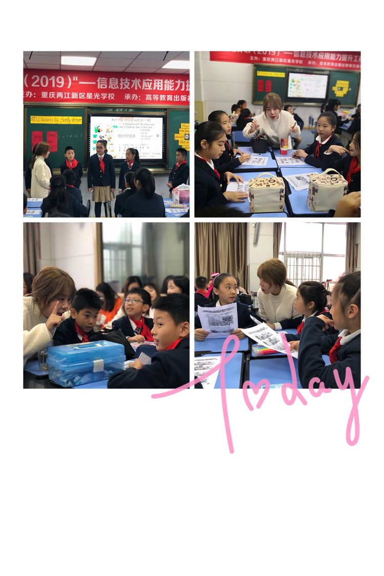 秋光散盡寒意濃,恰逢今日已立冬。由重慶兩江新區(qū)星光學(xué)校主辦,高等教育出版社教師發(fā)展中心承辦的“國(guó)培計(jì)劃(2019) ——信息技術(shù)應(yīng)用能力提升工程示范校項(xiàng)目”繼續(xù)在我校展開(kāi),今天的培訓(xùn)在來(lái)自成都市雙流九江小學(xué)江姝潔老師的一堂英語(yǔ)課中拉開(kāi)了帷幕。